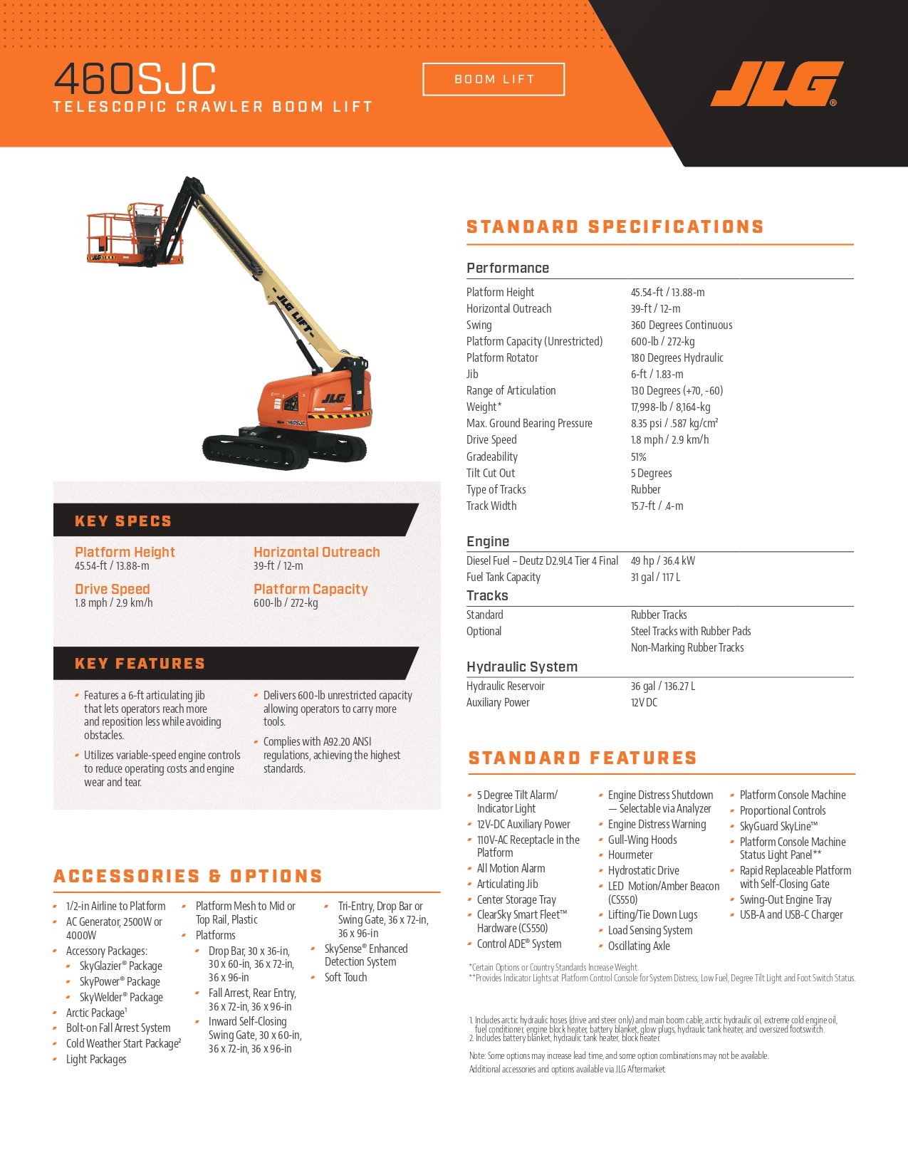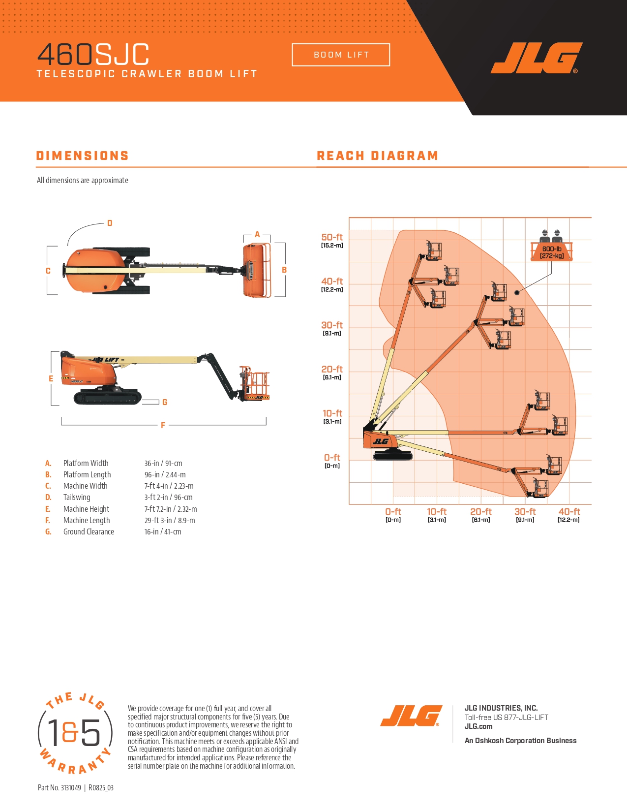 De JLG 460 SJC is een krachtige telescopische rupshoogwerker die speciaal is ontwikkeld voor werkzaamheden op hoogte in uitdagende werkomgevingen. Dankzij het grote bereik, de sterke hefcapaciteit en de uitstekende terreinprestaties is deze machine ideaal voor bouwprojecten, onderhoudswerkzaamheden en industriële toepassingen.