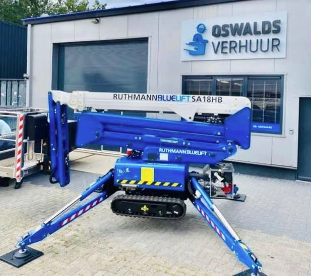 De Ruthmann Bluelift SA18HB is een compacte en veelzijdige spinhoogwerker die ideaal is voor werkzaamheden op moeilijk bereikbare locaties. Dankzij de rupsaandrijving en de elektrische/benzine-aandrijving kan deze machine moeiteloos over ruw terrein rijden zonder schade aan de ondergrond te veroorzaken.