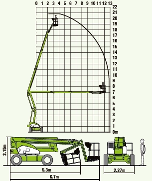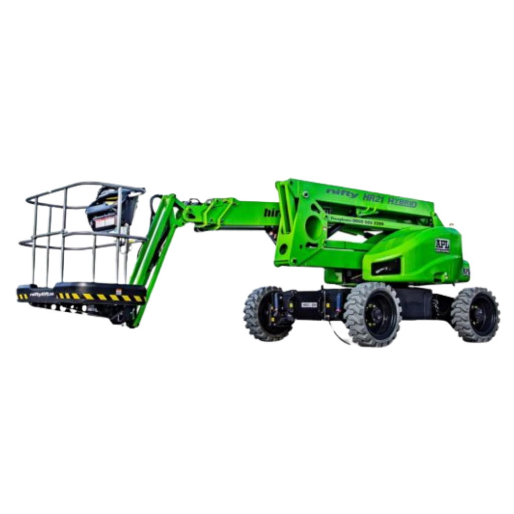 De Nifty HR21 is een krachtige, zelfrijdende knikarmhoogwerker met een maximale werkhoogte van circa 20,8 meter. Dankzij een horizontaal bereik van ongeveer 13 meter en een platformcapaciteit tot 250 kg biedt deze machine uitstekende toegang tot moeilijk bereikbare werkplekken. De HR21 combineert een compact ontwerp met goede manoeuvreerbaarheid en is beschikbaar met diesel-, hybride- of elektrische aandrijving, waardoor hij geschikt is voor zowel binnen- als buitentoepassingen en ruw terrein.