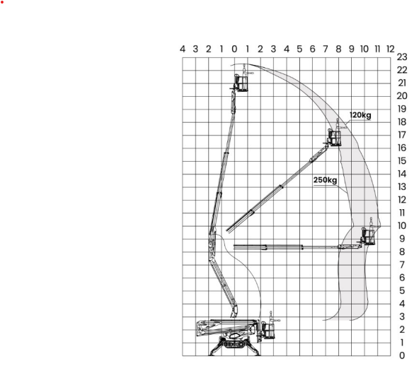 Met een maximale werkhoogte van 22,5 meter en een zijdelings bereik tot 11,2 meter bereik je eenvoudig moeilijk toegankelijke plekken. De robuuste giek en zwenkbare werkbak zorgen voor optimale positionering tijdens het werk. Dankzij het maximale hefvermogen van 250 kg werk je probleemloos met twee personen en gereedschap.