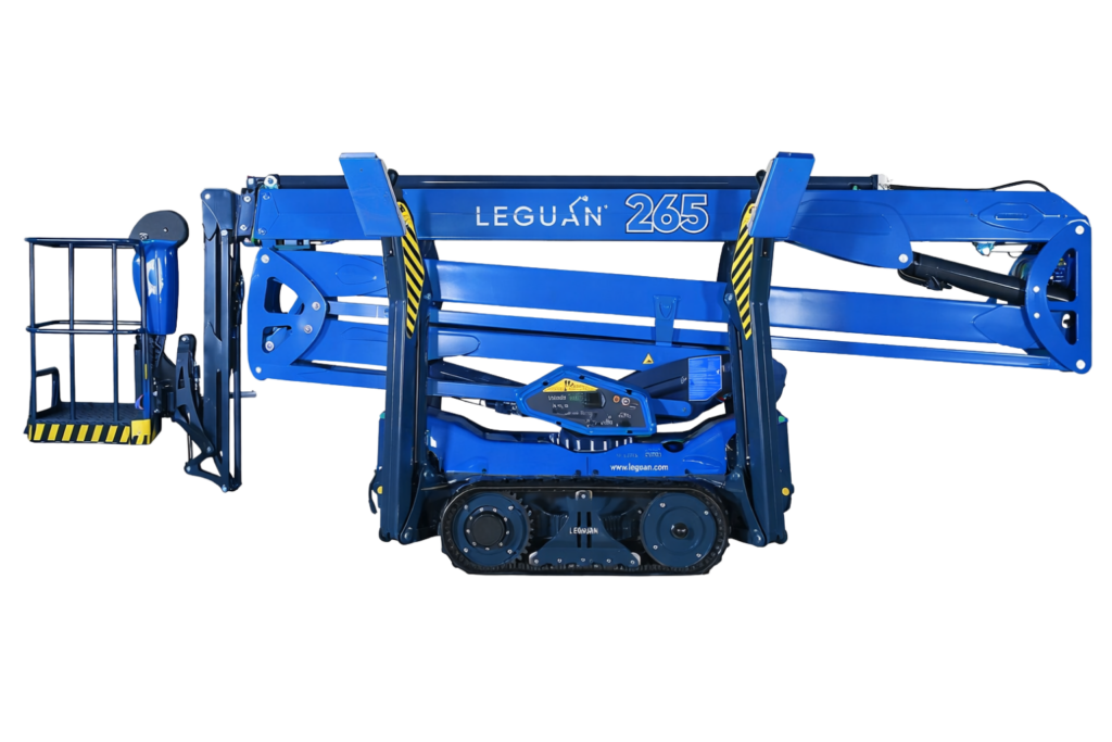 De Leguan 265 is een moderne 25 meter spinhoogwerker die prestaties, snelheid en flexibiliteit combineert in één compacte machine. Dankzij de krachtige rupsaandrijving en hoge bodemvrijheid is deze hoogwerker uitstekend inzetbaar op ruw, ongelijk of kwetsbaar terrein.