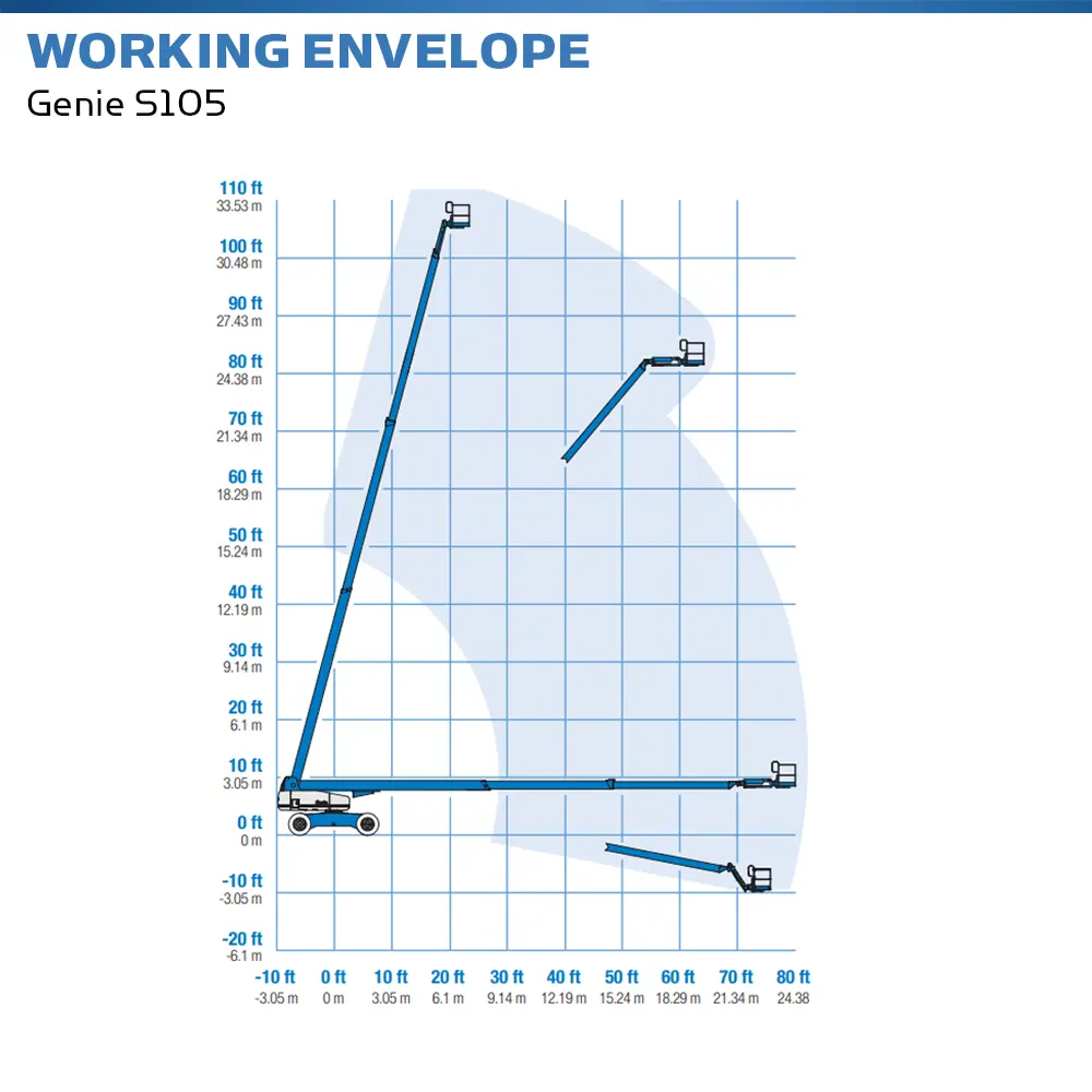 Optioneel is de Genie S-105 leverbaar met stroomvoorziening in de werkbak, zowel 230V als 380V, waardoor elektrisch gereedschap op hoogte direct inzetbaar is.