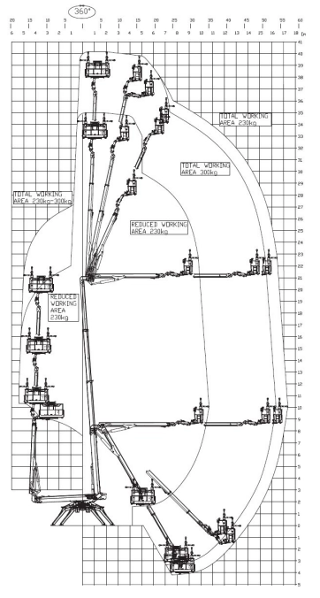 De maximale werkhoogte is 40,2 meter en het zijdelings bereik 17,5 meter.