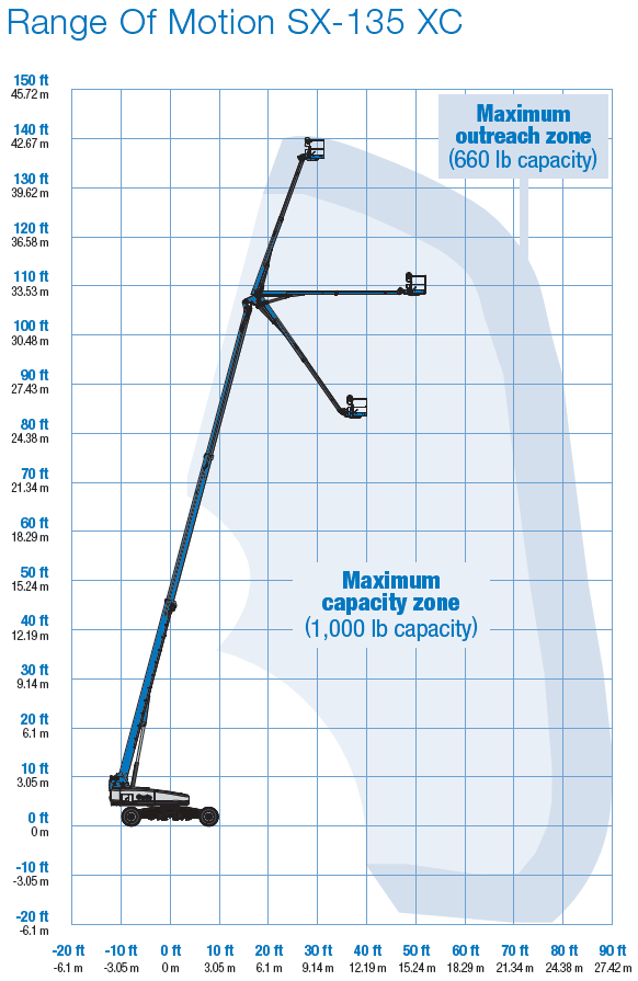 De Genie SX-135XC is uitgerust met een uitschuifbare jib, wat extra bewegingsvrijheid biedt en de bereikbaarheid van moeilijk toegankelijke werkplekken vergroot.