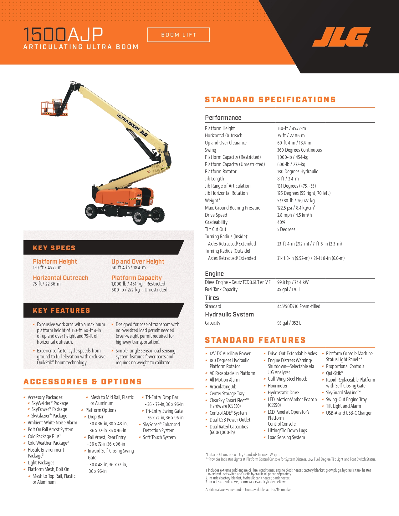 De JLG 1500AJP is een diesel aangedreven knikarmhoogwerker die speciaal is ontworpen voor industriële toepassingen en hoogwerkzaamheden. Met de indrukwekkende werkhoogte van 48 meter en reikwijdte van 23,5 meter is deze hoogwerker uitstekend geschikt voor allerlei werkzaamheden op grote hoogte, zoals het wassen van ramen, schilderwerk en onderhoud in de industrie. De machine is uitgerust met een draaibare jib, waardoor de werkbak eenvoudig kan worden gepositioneerd voor maximaal bereik en flexibiliteit. Bovendien is de 230V aansluiting in de korf handig voor het gebruik van elektrische apparatuur op hoogte.