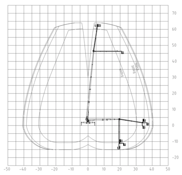 Want met de bereiken op hoogte van een 70 meter maar nu met 3 gestuurde assen haalt deze vrachtautohoogwerker niet alleen 64 meter werkhoogte maar haalt hij ook met gemak 40,5 meter zijdelings. Een greep uit zijn werkbereik: op 50 meter hoogte heeft deze topper nog 25 meter zijdelings bereik!