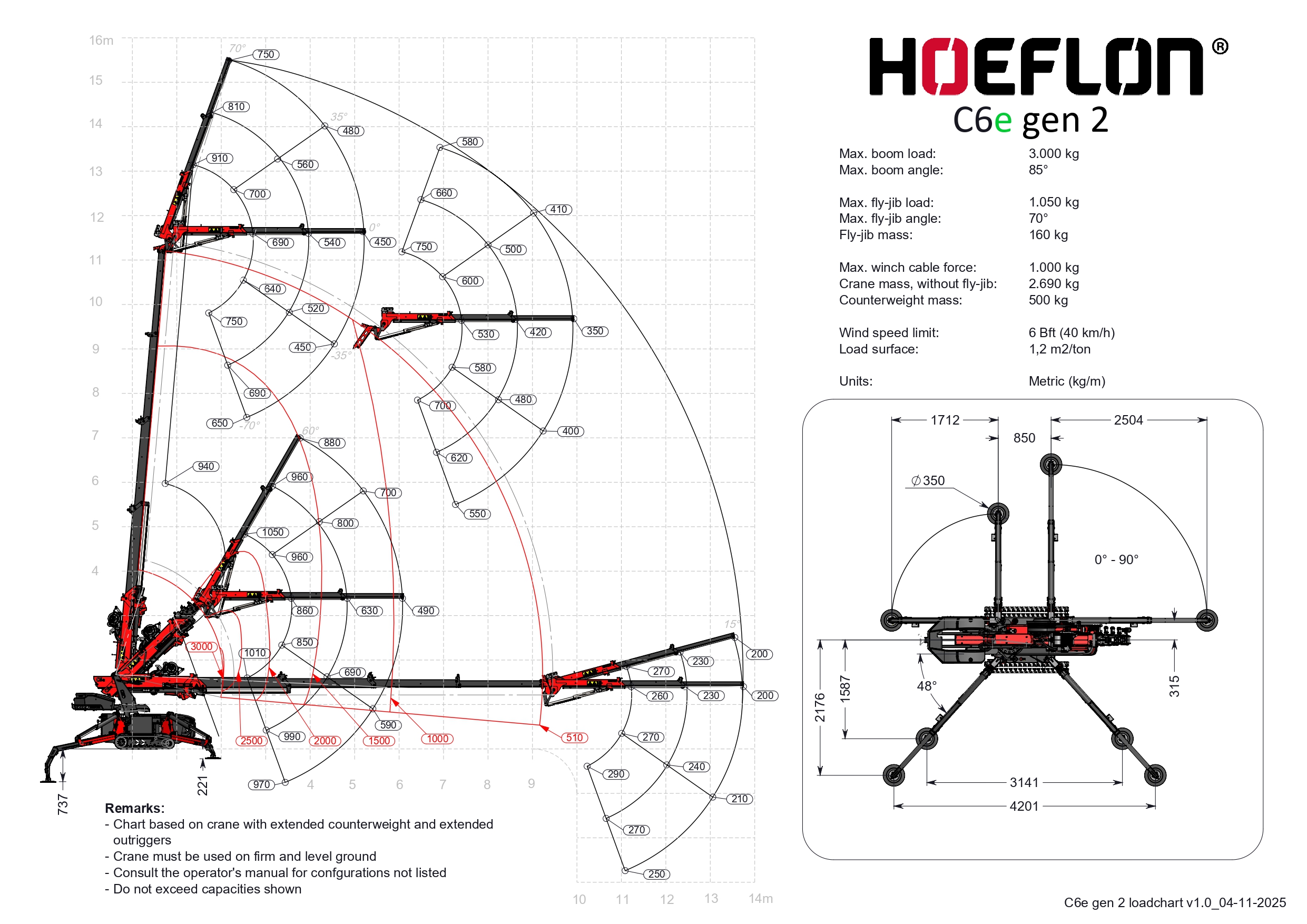 De Hoeflon C6e (volledig elektrisch) is een baanbrekende compacte elektrische minikraan die kracht, flexibiliteit en precisie combineert in één robuust machinepakket. Met een indrukwekkende maximale hijscapaciteit tot 3.000 kg en een hijshoogte tot 16 meter is deze kraan ideaal voor een breed scala aan toepassingen – van bouw en installatiewerk tot glasmontage en industriële projecten.
